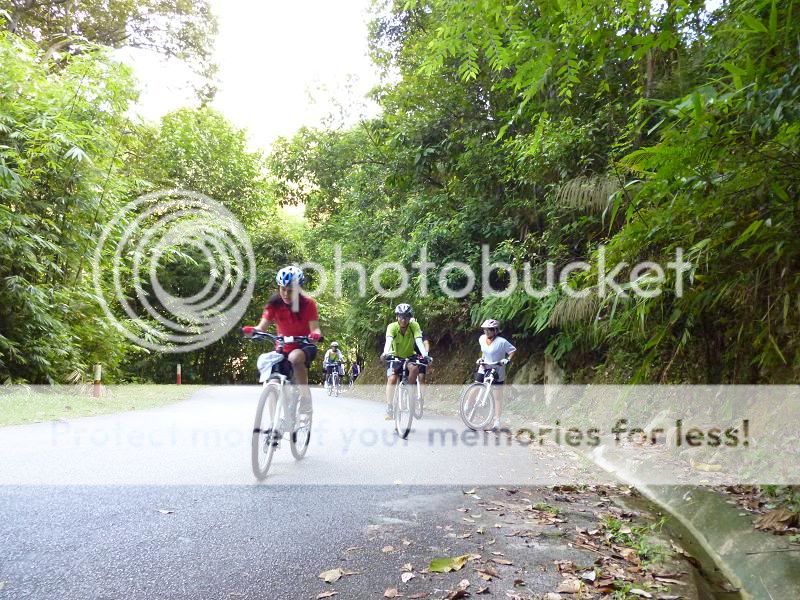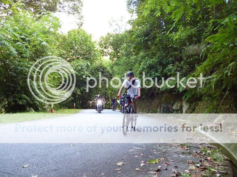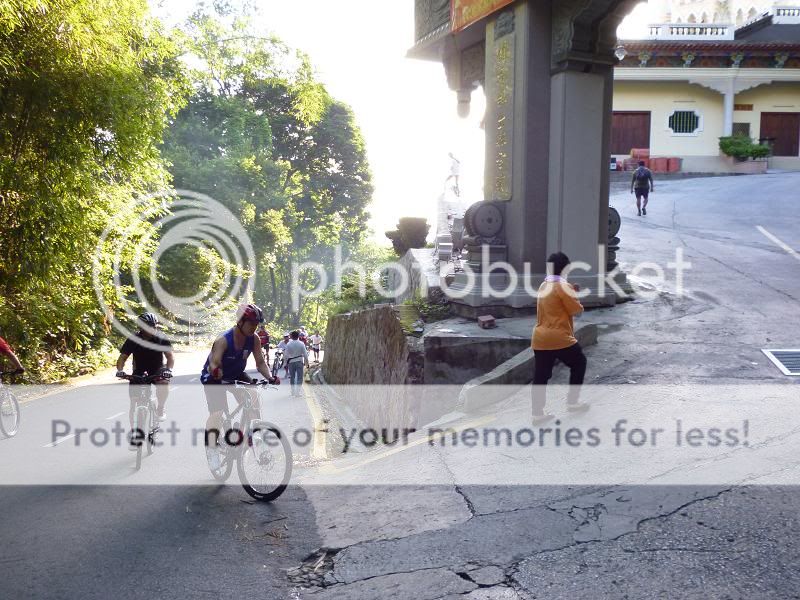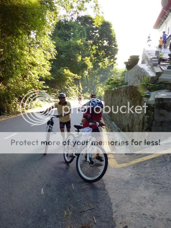 iori隨我踏入300m的爛蕉園之後我們就掉頭去會合大夥兒..抵達伯公廟,以我所看大家應該到了很久,都不是喘喘的樣子了..再來就往hilton休息亭騎去,也是我們這次活動的終點...