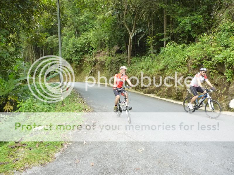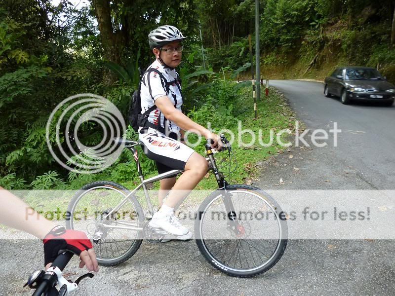 到了水壩,大家有說有笑,拍拍照,談談乐..當大家要再進一步攻上hilton時,唯一一輛小折的車主~腳車友先告而退..說要開會喔..