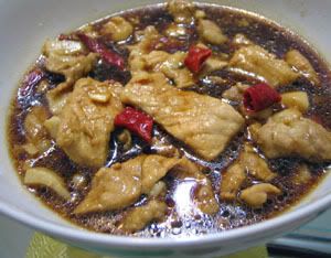 再放鸡肉进去一起煮,十分钟后加点盐和麻油就行了..