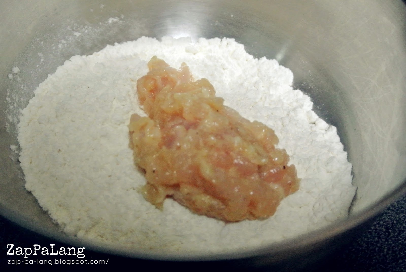 材料: 鸡胸肉250g, 蛋 1颗 ,蒜粉1匙, 黑胡椒1茶匙, 盐1茶匙, 粟粉1匙, 面粉1碗。