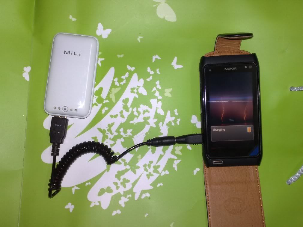 Mili Power Miracle的容量是2000 mAh, 可以充满我们的N8(1200 mAh)...还有extra