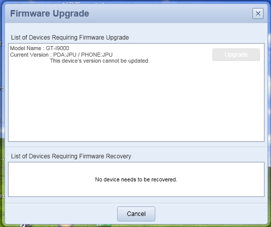 刚才去试了试kies,想不到可以firmware upgrade, 可以detech 到