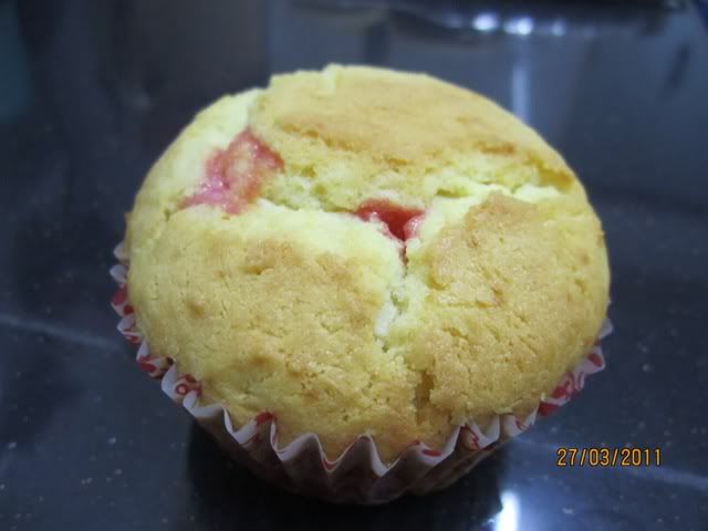 很久没有入厨房了~工作忙,而且刚从台湾旅行回来~真不知道已经多久没有下厨~很怀念那烹饪烘焙的感觉~昨晚兴致一来,赶快去动手~不过,因为没特别准备什么材料,只能就地取材,就做了草莓玛芬~