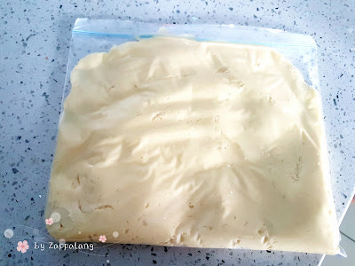 4。打开密封袋再把3全部倒入,铺平后放入冰箱20分钟。