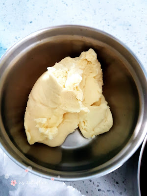 材料:无盐奶油(室温软化) 125g, 糖粉 40g (原来食谱是50g), 蛋糕粉 90g, 马铃薯粉 125g, 奶粉 10g, 黑芝麻少许, 甜菜根汁少许。