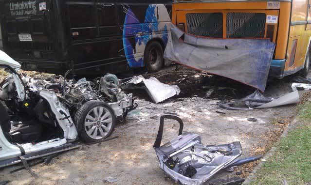 好像是撞到黄色的巴士. 不是highway都可以跑那么快!? |