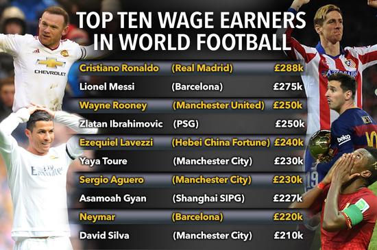 虽然河北华夏方面并未公布拉维奇薪水的具体数额,但《太阳报》却透露,拉维奇将会领到高达24万英镑的周薪,这样的薪水,位居足坛第5高薪,只有C罗、梅西、鲁尼、伊布这四位巨星的工资,比拉维奇高。