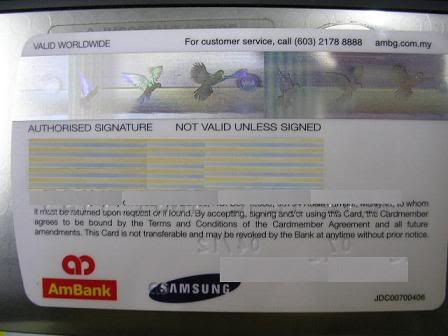 让我最惊奇的是卡背后的visa 小鸟,不是单一的,而是整排的,小鸟在飞翔的不同的形状。