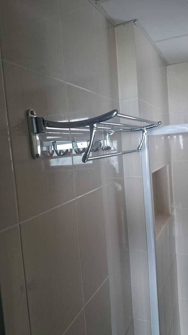 厕所的毛巾架,我和你一样,太高我会中,女友手不能到。但这东西蛮好用的,我觉得啦,所以找一个中心位咯,而且是那个平面可以收上去的。