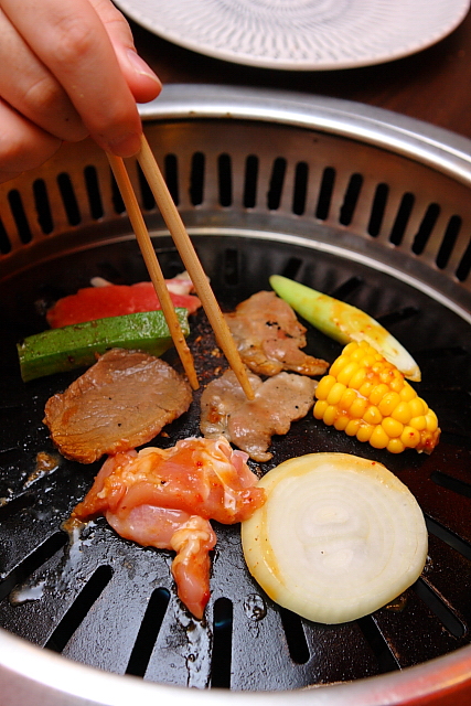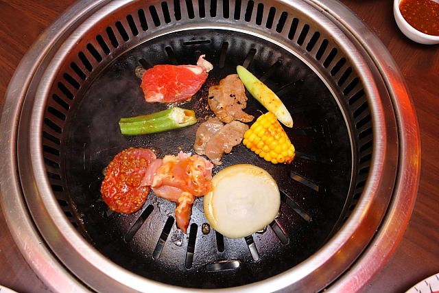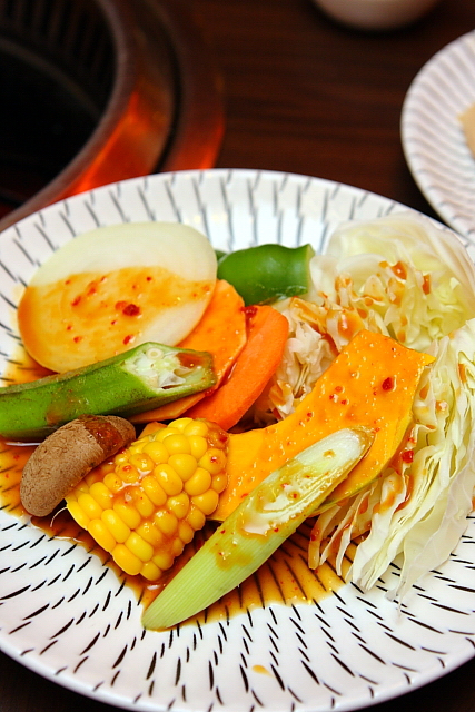 我吃了很多沙拉,也拿了很多菜包着烤肉一起吃