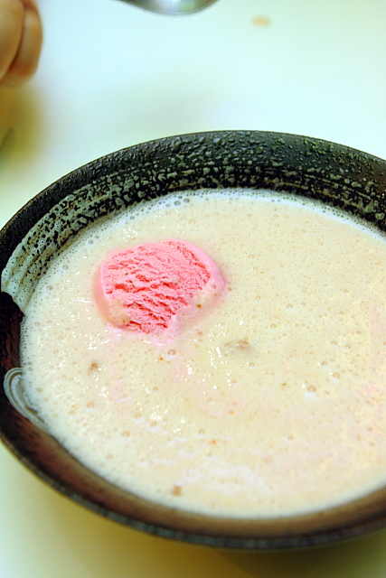 很饱满的草莓味,感觉上不像西米露。。比较像融化了的草莓冰淇淋