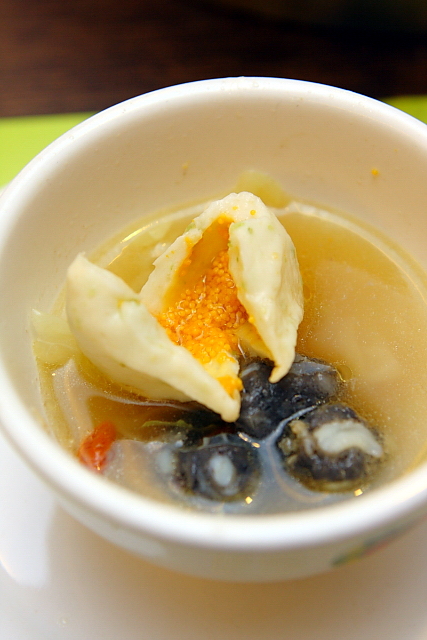 我有一个吃法, 就是盛一碗汤, 然后把这小笼包的汤汁放出来, 真的让整碗汤变得好甜