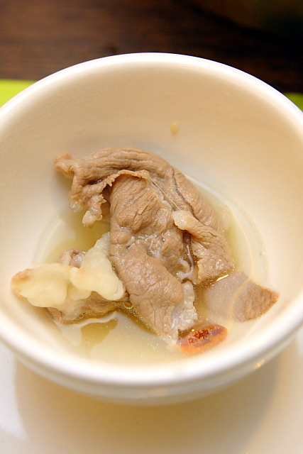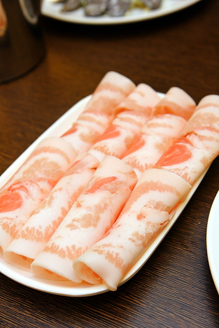 猪肉片切的刚刚好, 而且刷完后猪肉片的口感好 Q, 她们并没有给你任何酱料