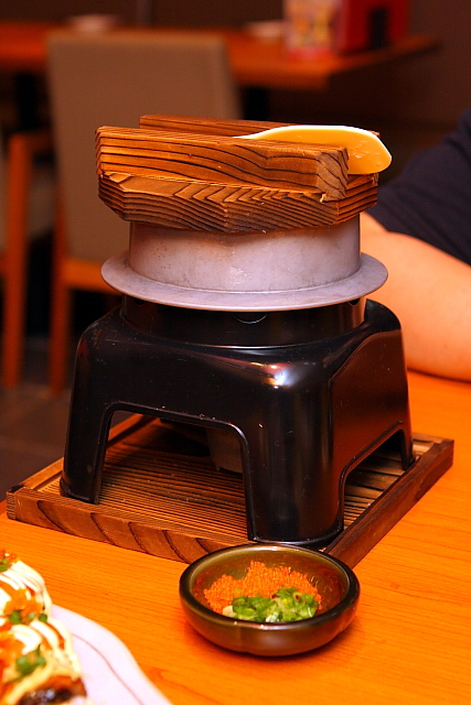 招待小姐还亲切的告诉我们要用筷子挫一个洞先, 不然会爆酱喷到眼睛, 哈哈