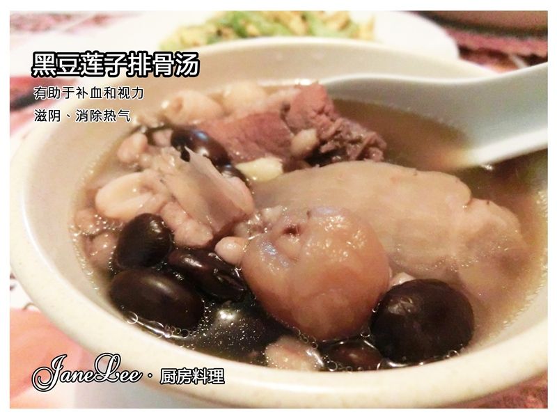 材料:排骨、黑豆、莲子、玉竹、薏米、龙眼干、姜、清水