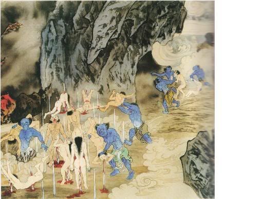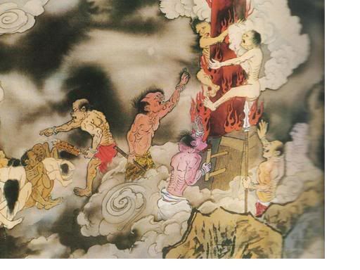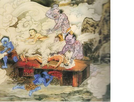 此类夜叉厉鬼,无一不是自己业力显相;凶残恶毒,无不是怨憎心而起现形,今往何地狱受何酷刑,一一皆是造罪之加倍数呈现,绝非阎罗天子之设定,而是良心之谴责。 |