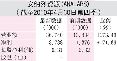 2010财政年的首九个月累积每股盈利(EPS)=16sen比较去年同期的7.7sen来得高许多。