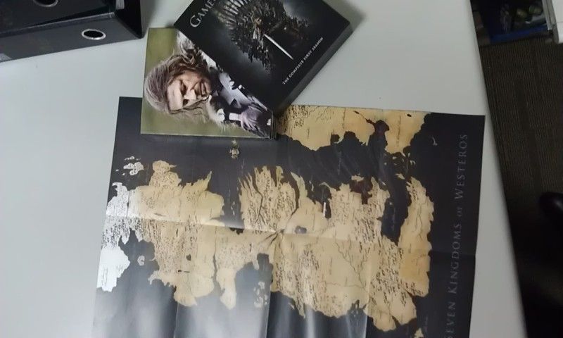 五碟排开,衬里有个pocket装了张Westeros的地图,背面则是五个家族 ...