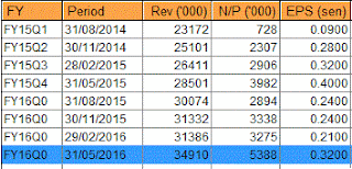 2016财年末季(截至2016年8月31日止)营业额从同期的3007万令吉,年增12%至3381万令吉,主要因集团聘请较多医生,以及提供额外服务所致。