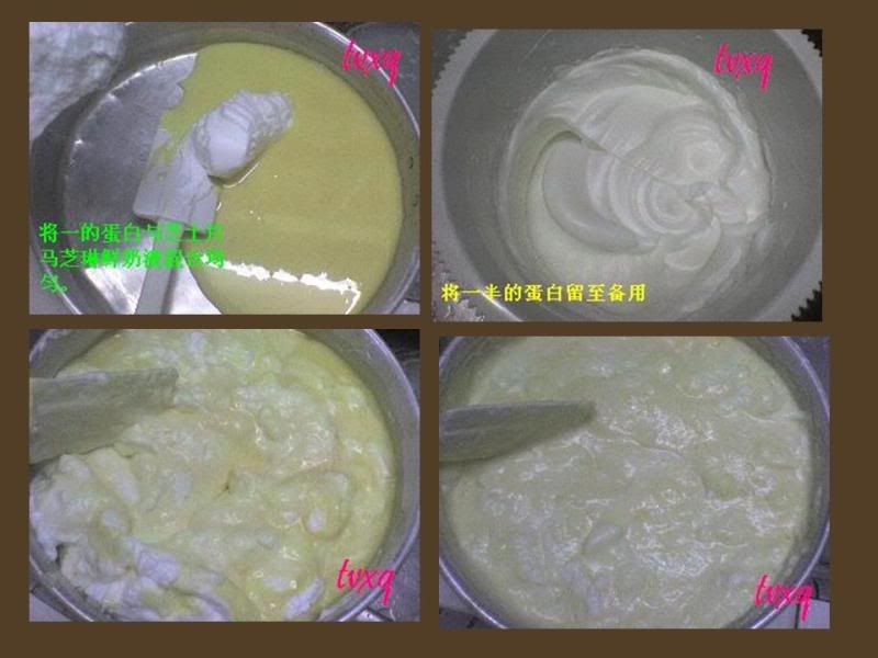 有个疑问:一半的蛋白参到cheese糊里时蛋白是不是会变成一粒粒的?因为用翻面式来拌好像很难才能将一粒粒的蛋白拌匀。。。我觉得问题好像在这里。。。
