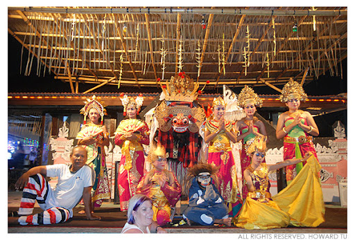 隔壁餐廳還有峇里傳統舞蹈表演,走近看,原來是孩童。算這餐廳老闆有頭腦,可以招攬顧客又不用付出昂貴的價錢請專業舞者,舞團們也樂於給與孩童練習的場地和收取團費。舞蹈結束后遊客們也紛紛上前與孩童們拍照。