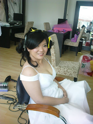 大清早就抵达了婚纱店。。。准备上妆。。。