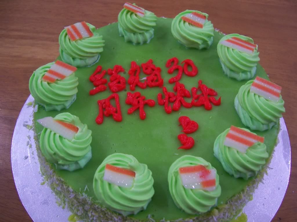 上个星期是爸妈的甜蜜结婚三十周年纪念,妈妈不爱吃甜的,太油腻的对爸爸身体不好,所以买了个小小的清香美味pandan蛋糕,小小庆祝一下。