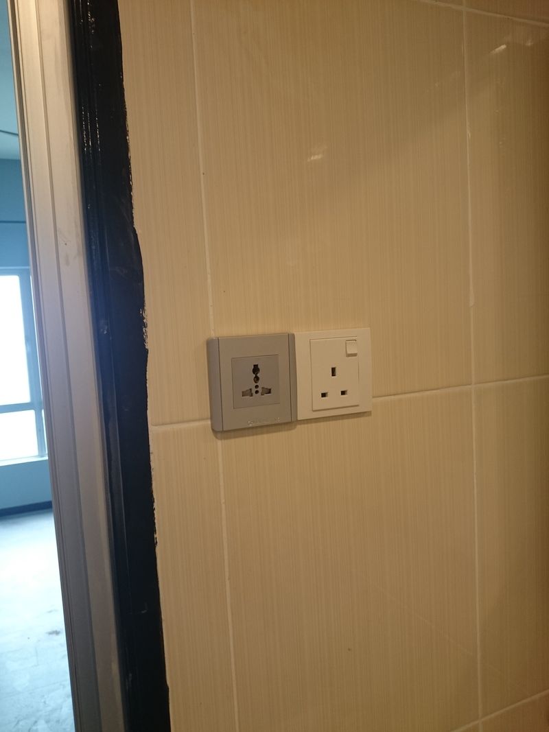 你要的图,美美的贴在墙壁上。这我不的不佩服。我的有有一黑一白,是因为我有去日本买了一些小电器,所以装一个universal 的 socket比较方便。