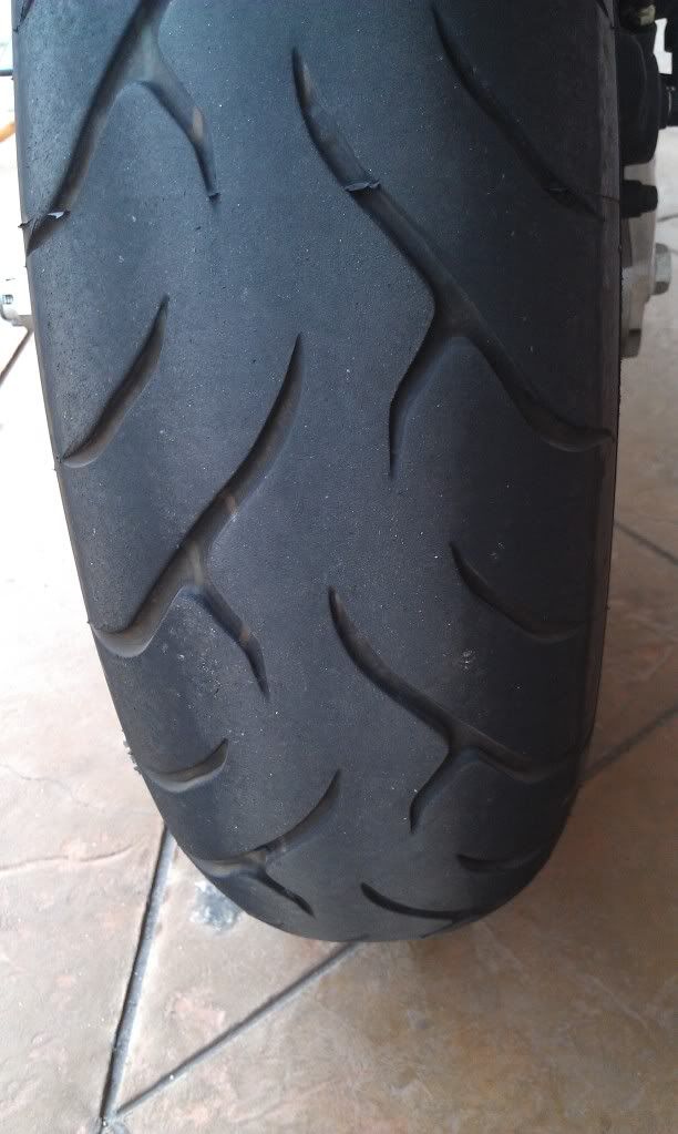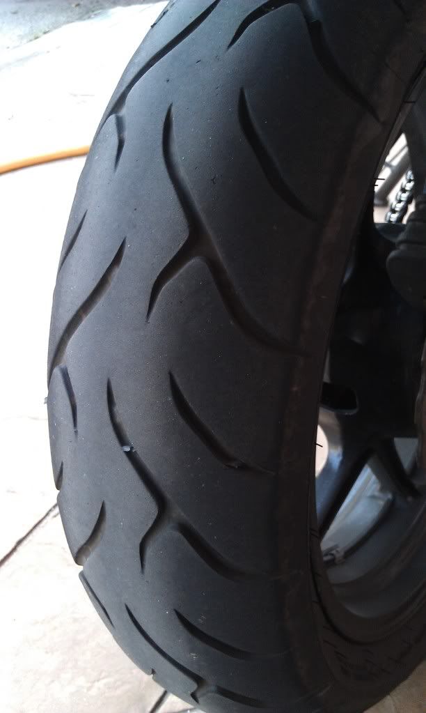 老大,你的轮胎还很好呐!!花也非常多,原装轮胎并没有想象的那么差,只是会吃的比较快,吃的快也就代表轮胎比较软和“咬地”,看你轮胎貌似没什么去拐弯,应该多去弯道走走~不然中间肯定先磨平,旁边一大堆花。