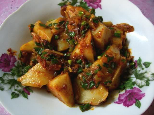 刚才炒的辣酱枧仔糕, 不知道这种糕的正式名称是什么,