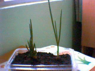 谢谢MIKIKO教我怎么种青葱。种了两棵,一棵是用小红葱,另外一棵是用洋葱。。。每次看着它们越长越高,很有满足感。。。