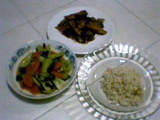 其实是我的减重晚餐。用江鱼仔,洋葱,罗卜,番茄及包菜煮的方便汤。很鲜,很清甜。只用一点味熷来调味。其实最近都在煮这类的汤,偶尔会加一点肉类。可是如果午餐吃的比较“重”的话,这个减肥汤就不放肉类了。
