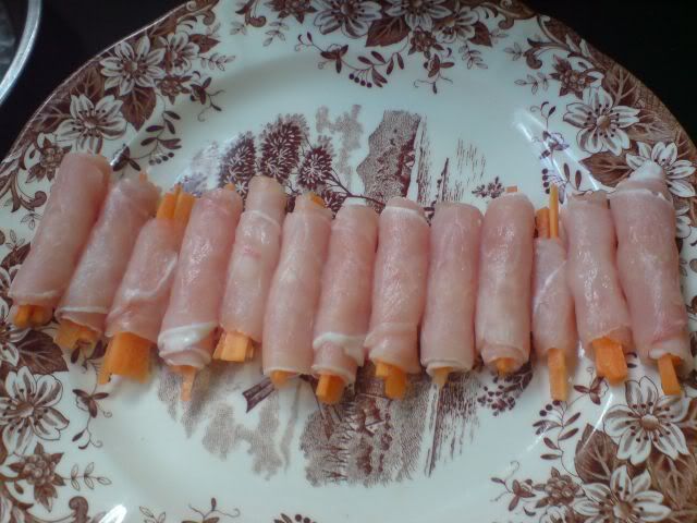今天假期,做了我一直想做的红罗卜烧肉卷 超薄猪肉片: 包了红罗卜丝,白里透红真美 ... jarjar6666 发表于 6-11-2010 12:47 AM