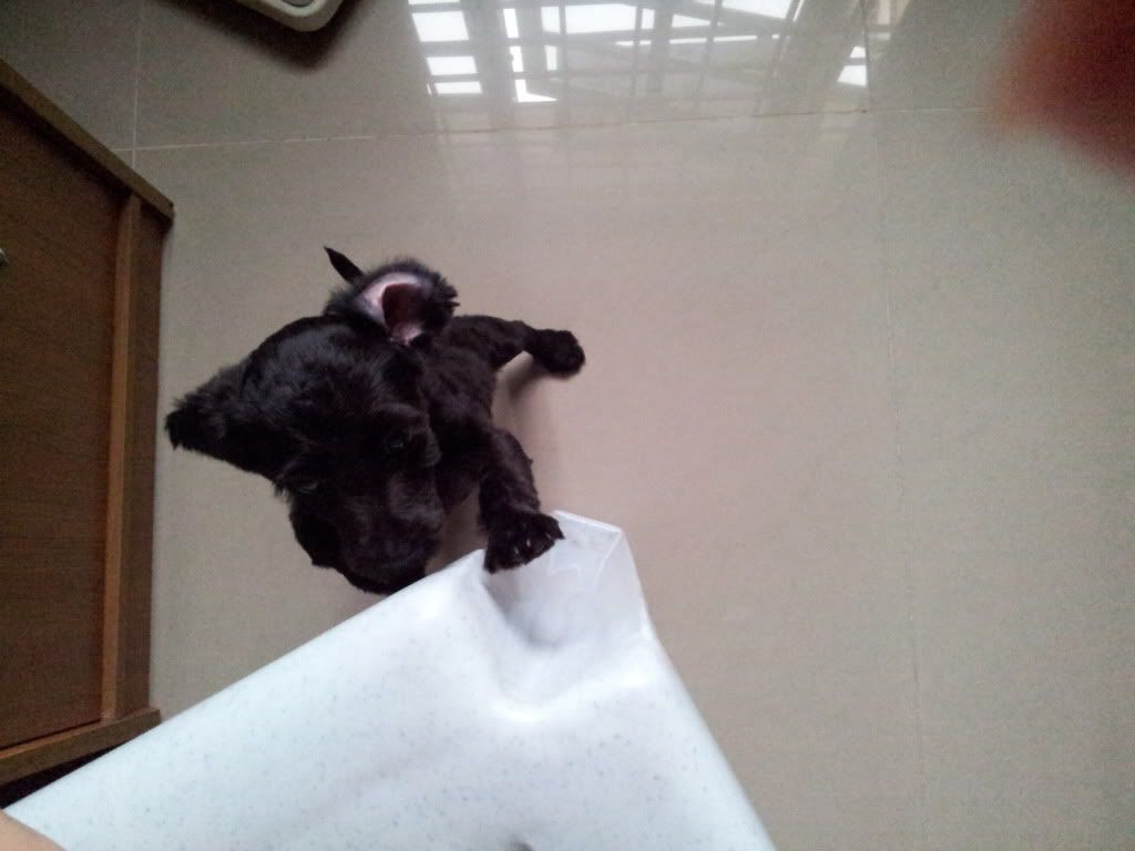 我的coffee小的时候就在笼子大小便,现在他大了就不在笼子小便了,大便也是。我搬家后他算在我不在是放他在我房里自由跑动,少关笼子,要train他喜欢笼子,狗狗又不会在自己的笼子大小便 (除非狗狗不常关笼子,那他就慢慢的把笼子当厕所了),所以我就买了尿盆咯。新买的笼子是两尺而已,主要是想让coffee把它当家,在我不在是给他安全感,而不是现在关着他的‘笼子’。讲就厉害而已.