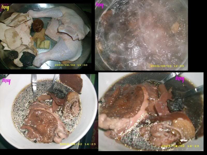 4)大锅水滚下土茯苓,生地,姜片,大鸡腿。。。。