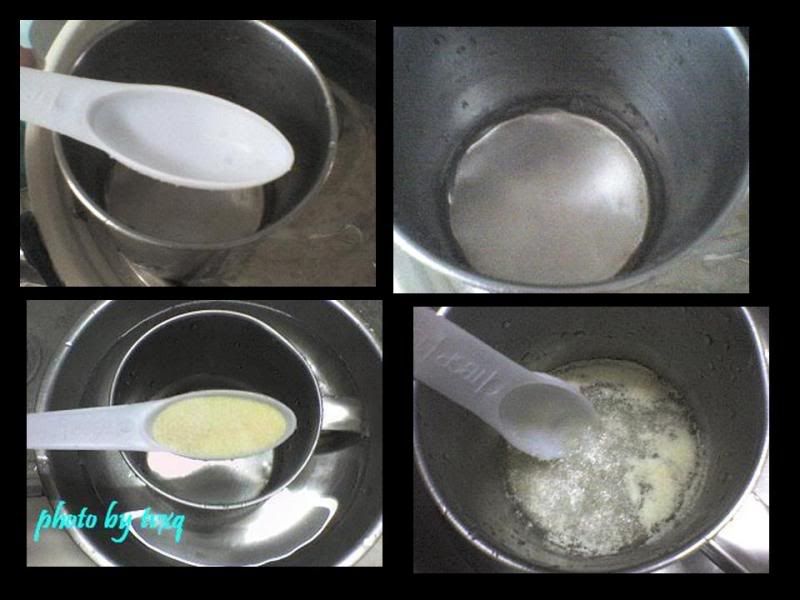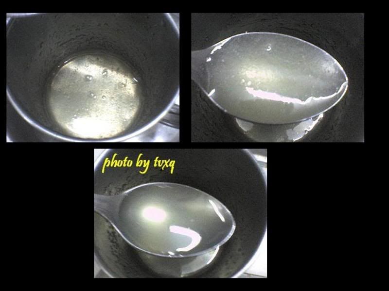 作法:洋菜粉加水攪拌溶化,煮沸後熄火。