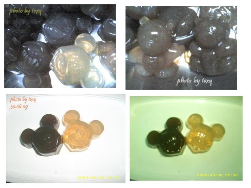 2.您也可以用純果汁代替水來做軟糖,不過這樣味道雖佳,但經過釀時間的塭沸,顏色無法保持原有的鮮艷,因此市售的軟糖多半加了香料、色素。圖片中的軟糖為美觀也都加了色素。