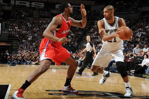 今天的比赛再次佐证了这一点。作为双方的主要火力点,邓肯和格里芬早早就进入对飙模式,前者上篮跳投连得4分,格里芬打板进筐做出回应。相比之下,邓肯明显更为老道,他在进攻端显得很低调,但却总是能觅得机会,用最简单的上篮不住涨分。首节中段,他在26秒内连掠4分,接着跳投再添两分,率队打出14-0攻击波,单节砍下10分。