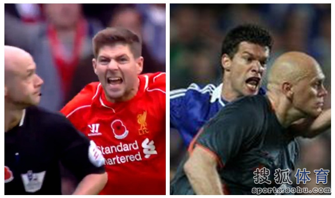 11月8日20时45分,切尔西2-1逆转利物浦延续新赛季联赛不败。第88分钟,杰拉德禁区弧顶抽射被防守球员阻挡,慢镜头回放,卡希尔有手球嫌疑,杰拉德向拒绝判罚点球的主裁怒吼。不禁让人想起09年欧冠半决赛切尔西大将巴拉克怒吼裁判的一幕,当时巴拉克的射门被巴萨球员用手挡出,主裁拒绝判罚点球,两球场景十分相似。
