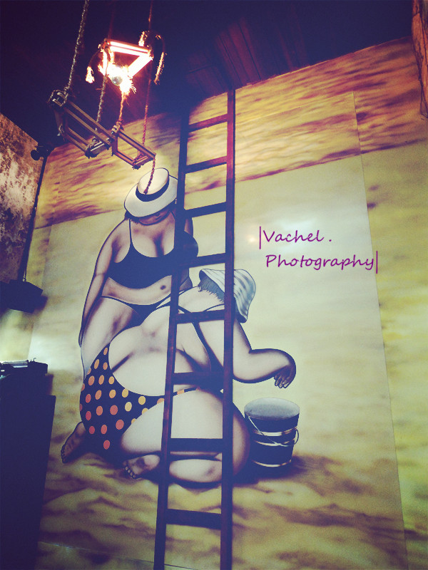 我想,这咖啡馆的老板,一定对这个size 的女人情有独钟 =P (No offence ) 不过壁画,还真的画得不错看哟