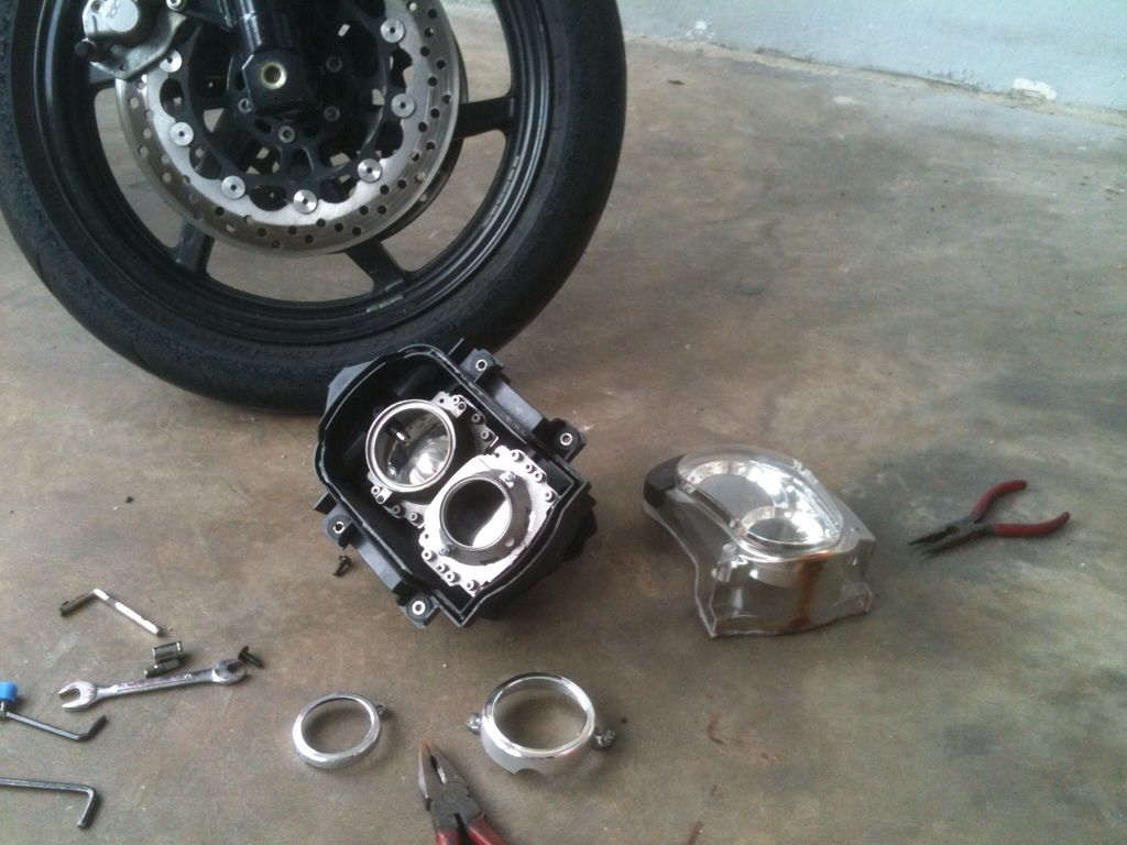 我刚才也在尝试拆大灯,可是很难拆 >.< 我的fairing很多地方都很脆弱了不敢大力去拆它