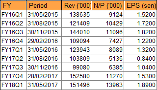 PANTECH在2017年末季的业绩其实已经相当出色,但是由于受到前三个季度的拖累,导致2017财政年净利只有3088万令吉,比前一年下滑720万令吉或18.9%。
