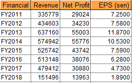 截至2019财年首半年,净利近2500万令吉,按年跌2.8%;营业额则扬5.8%至3亿2645万令吉,相比同期的3亿860万令吉。