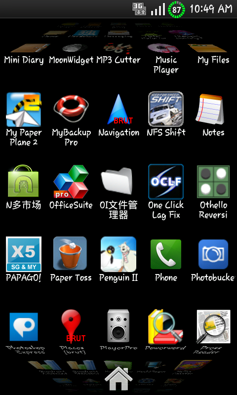 連 menu 翻動的方式也是向左右,icon 也是四方形的,這些都不是 android 的風格