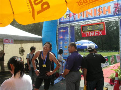 铁人赛回来了,时间是3小时21分,由于是比较迟出发,所以确实时间要等官方公布。游泳好像是33分钟,骑车突破到1小时34分钟,跑步1小时。