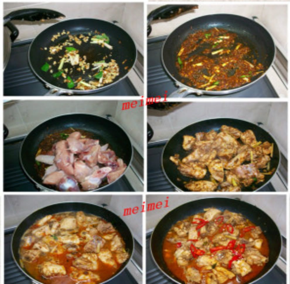 鸡肉块 红辣椒 姜 蒜米 小葱
