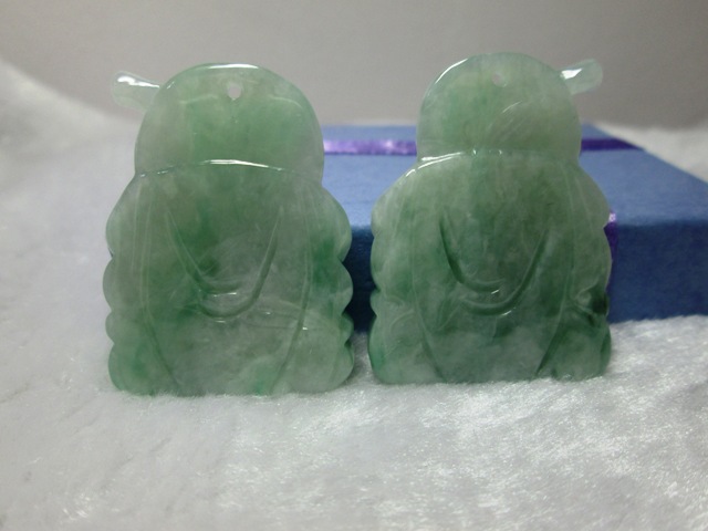 173. 天然缅甸翡翠福德正神土地公土地婆吊坠 一对只售RM620 --已售出