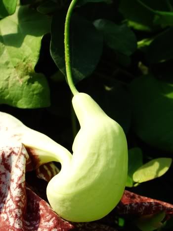 型態 : 植株在基部多分枝,呈叢狀向上直立生長,肉質莖灰綠色,四角棱狀,棱邊有齒狀突起及很短的柔毛,莖高20釐米至30釐米,粗3釐米至4釐米。花1朵至3朵從嫩莖基部長出,花大型,直徑15釐米至16釐米,5裂張開,星形,暗紫紅色,具淡黃色橫紋,邊緣密生暗紫紅色細長毛。
