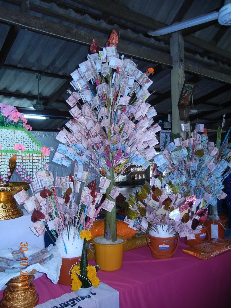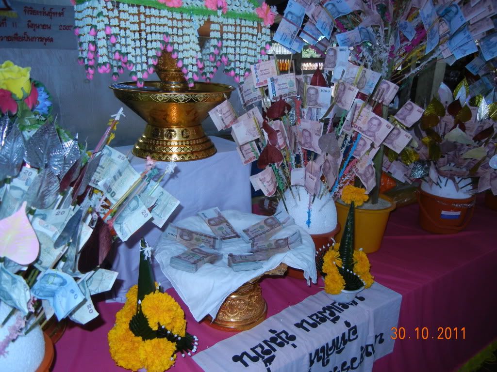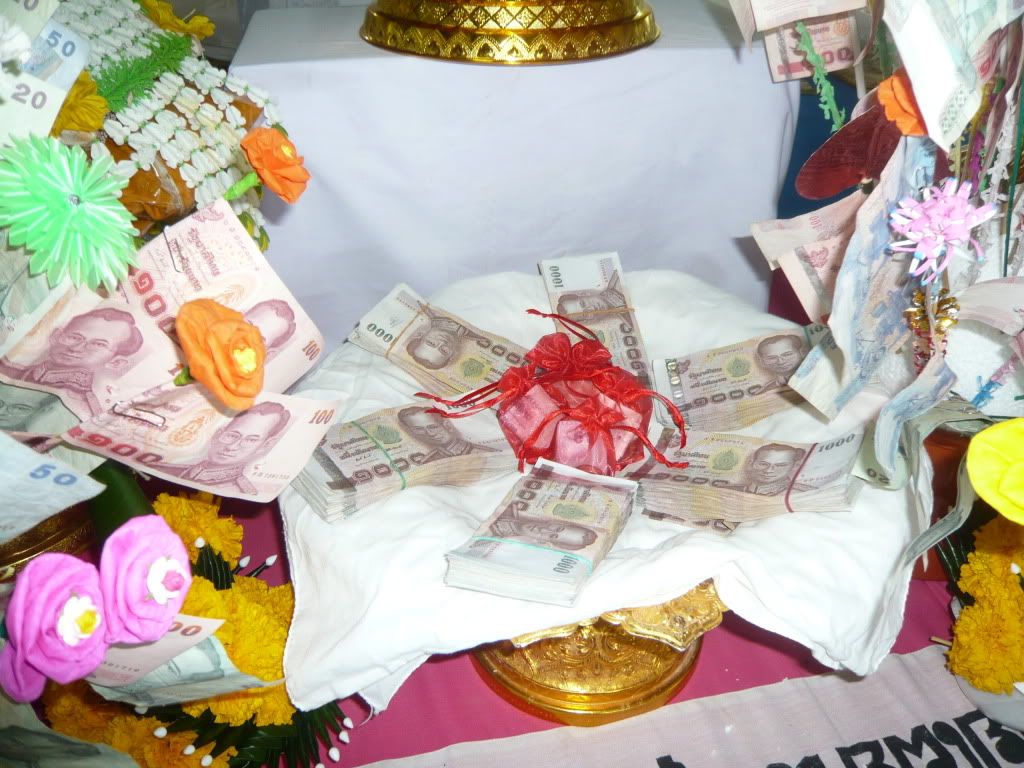 供盤上就是大家捐出耒的520000BTH, 加上当地人的随喜供养