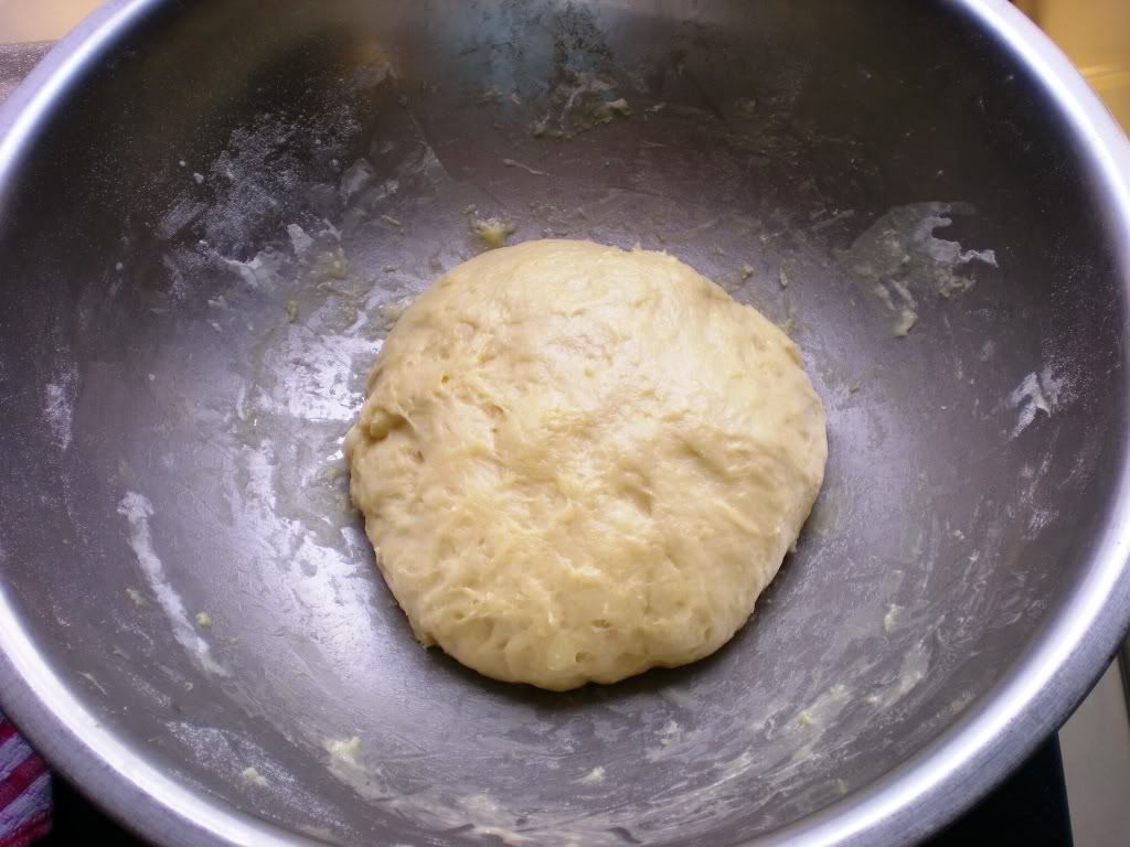 1. 将1-9的材料放入搅拌盆里搅拌成光滑的面团.